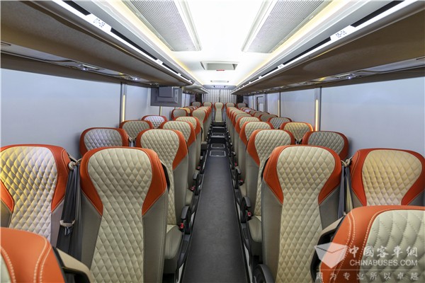 At the same time, it uses ergonomic seats. , Stepless lifting side curtains, surround stereo audio and video, tour guide desk, sterilization and disinfection system, body temperature detection services, etc., provide passengers with five-star ride service;